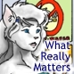 Description: A feline-humanoid face, with the words "what really matters" beside it.